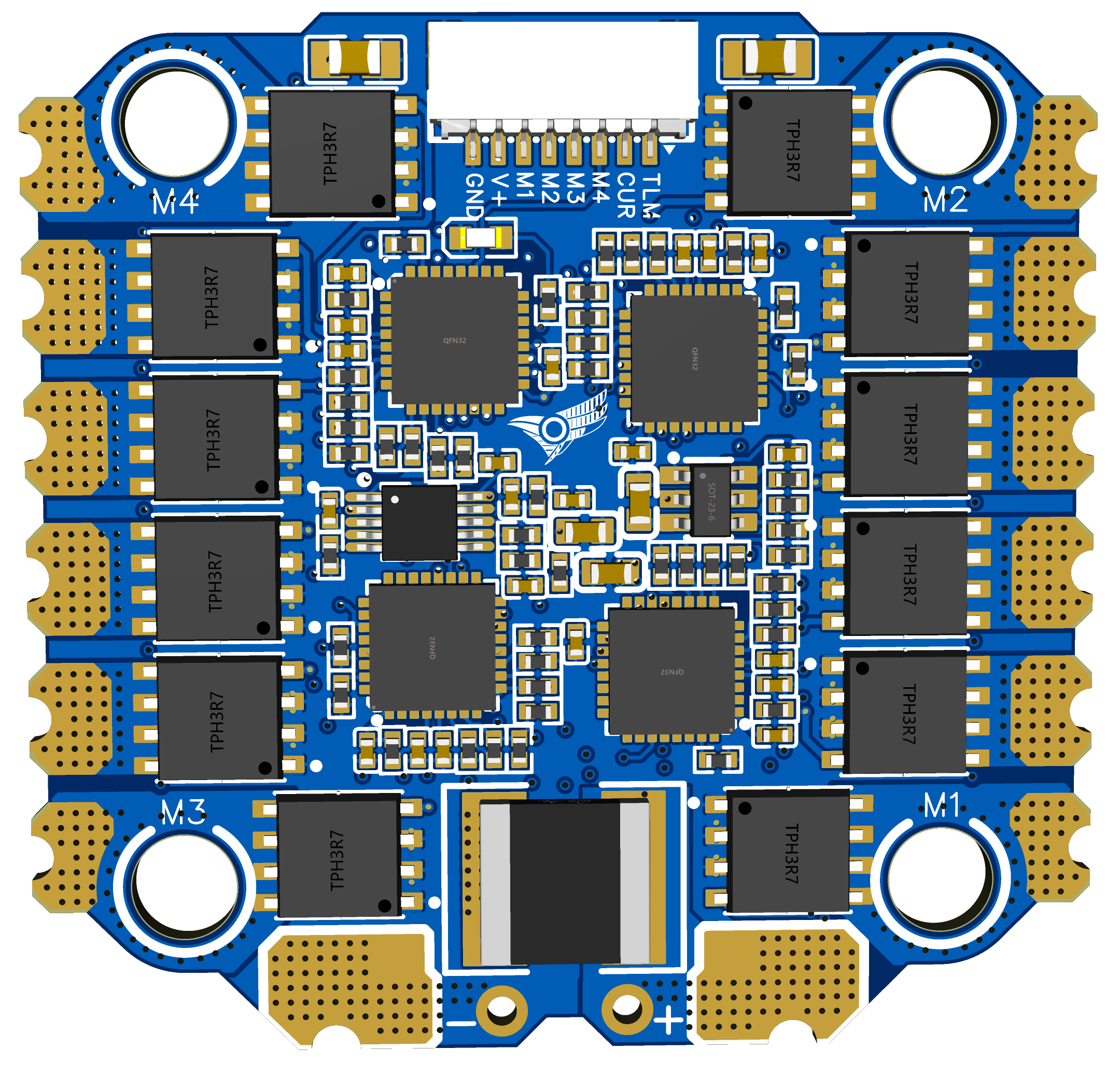 Dört motoru tek karttan, tam hassasiyetle. FPV ve freestyle için optimize edilmiş sürücü sistemi.